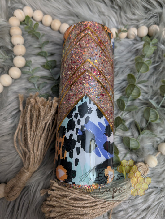 RTS Rainbow Floral Swirl 20oz Skinny Screw Top Rhinestone Tumbler