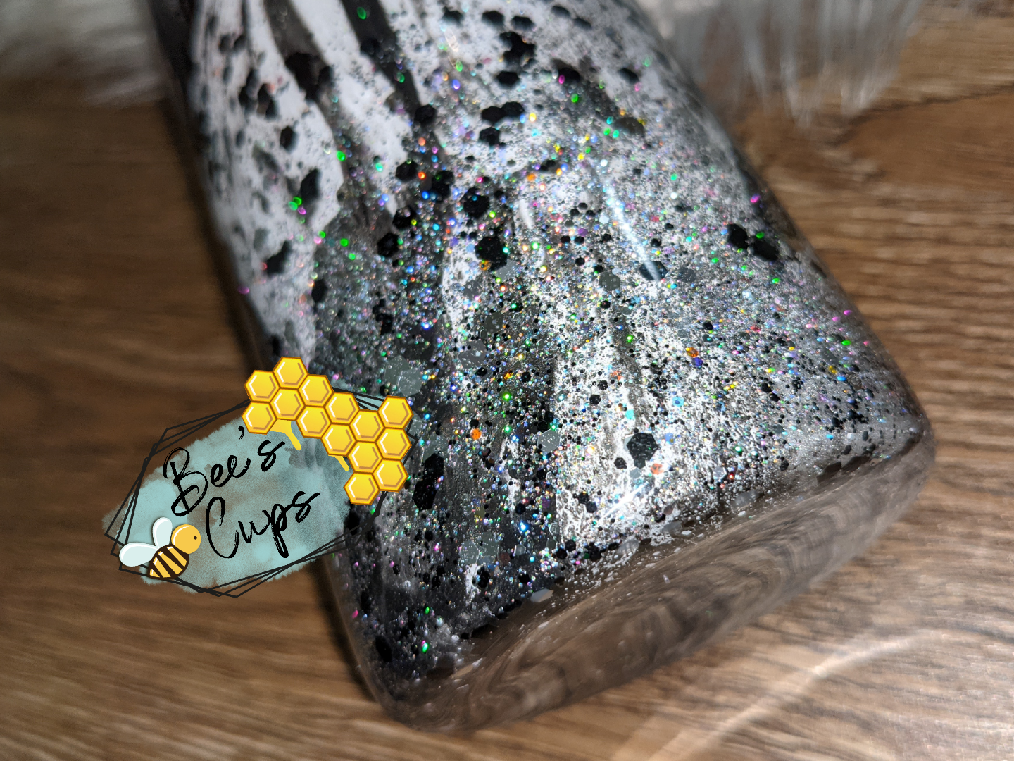 Tumblers are based white and are hydrodipped in black/silver mix to give the swirl. Each Tumbler will come out different every time. This can be done with/without silver and black glitter ombre at the bottom. Choose your size and your princess as well!