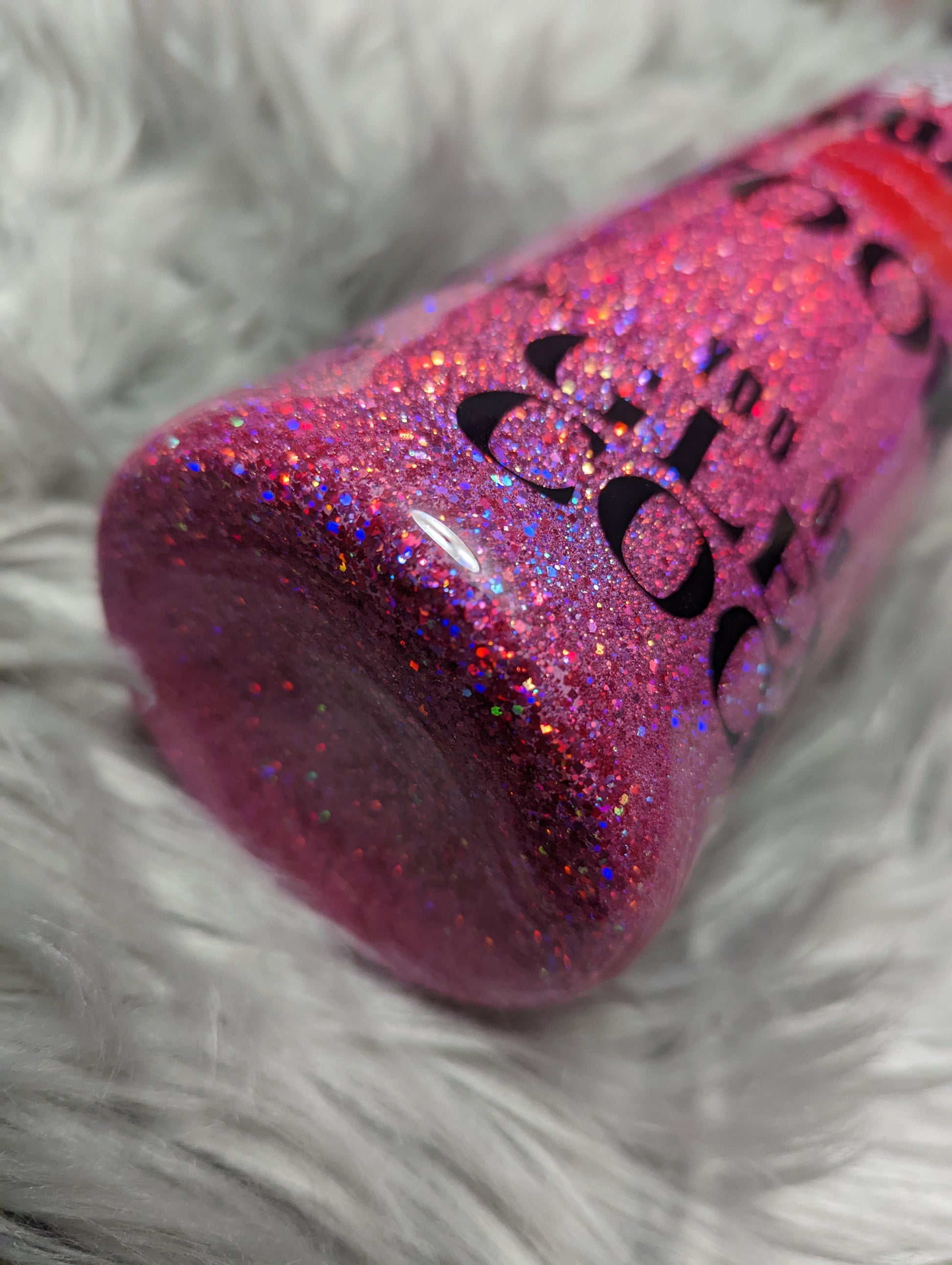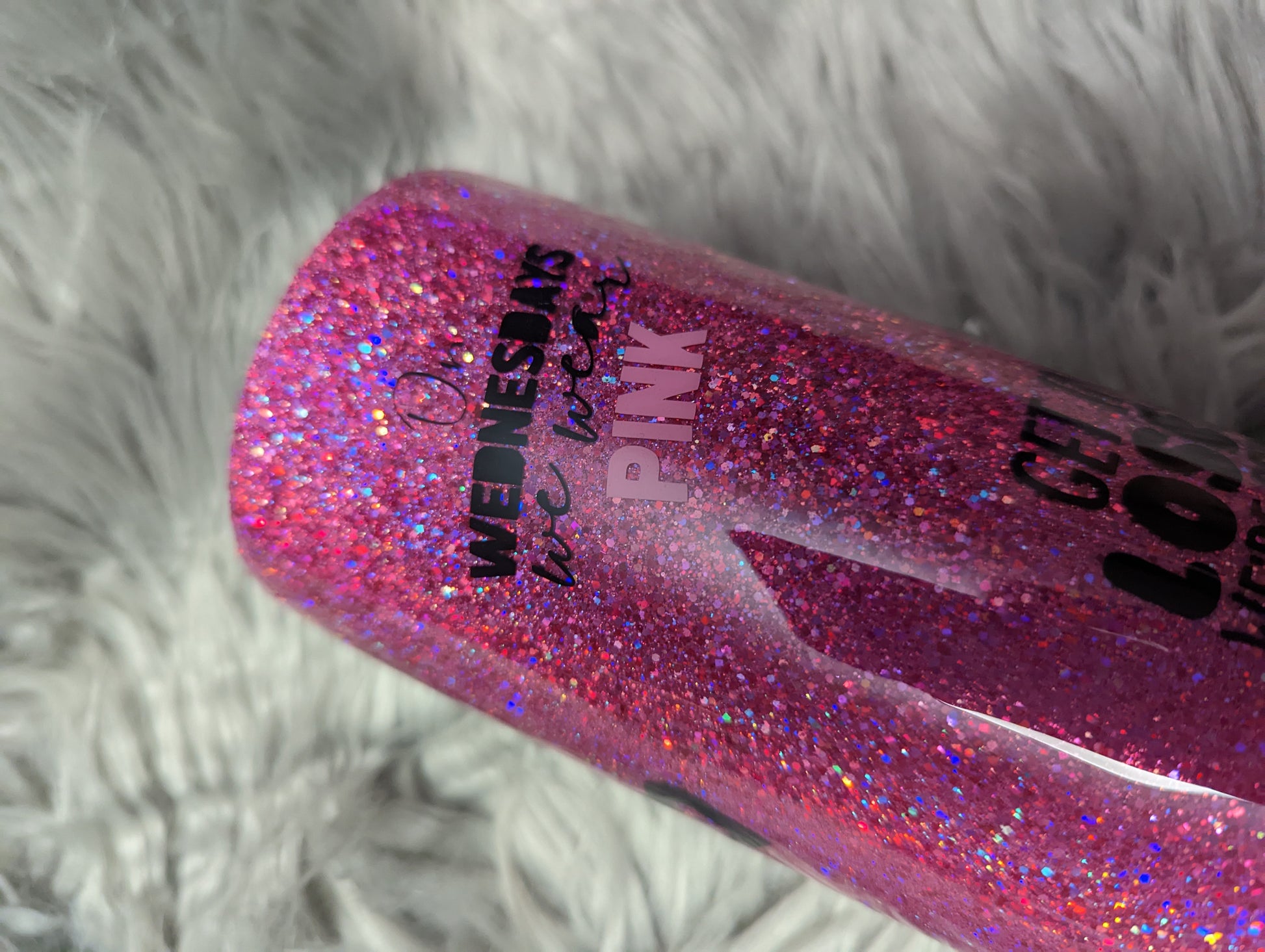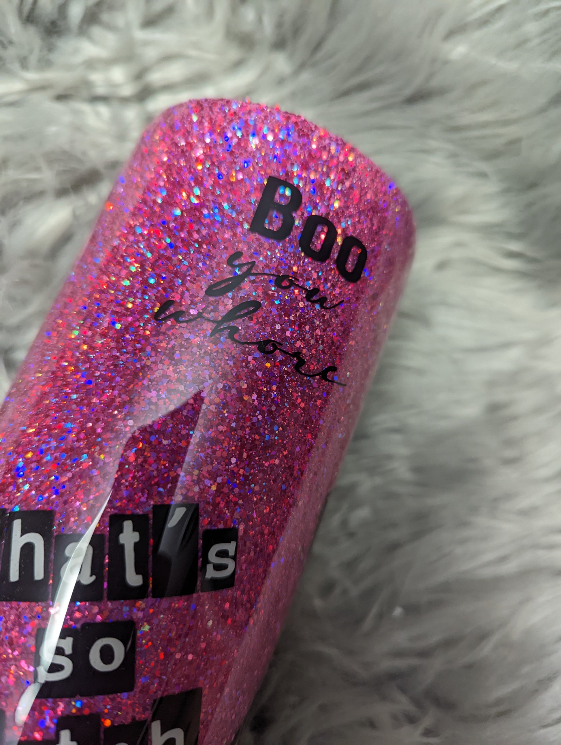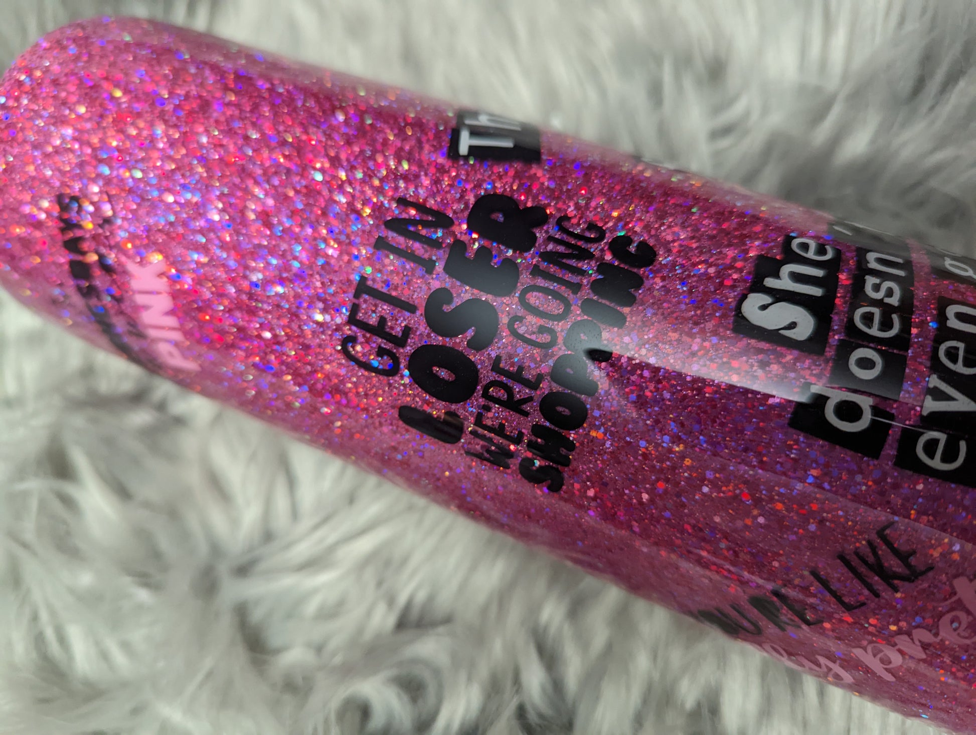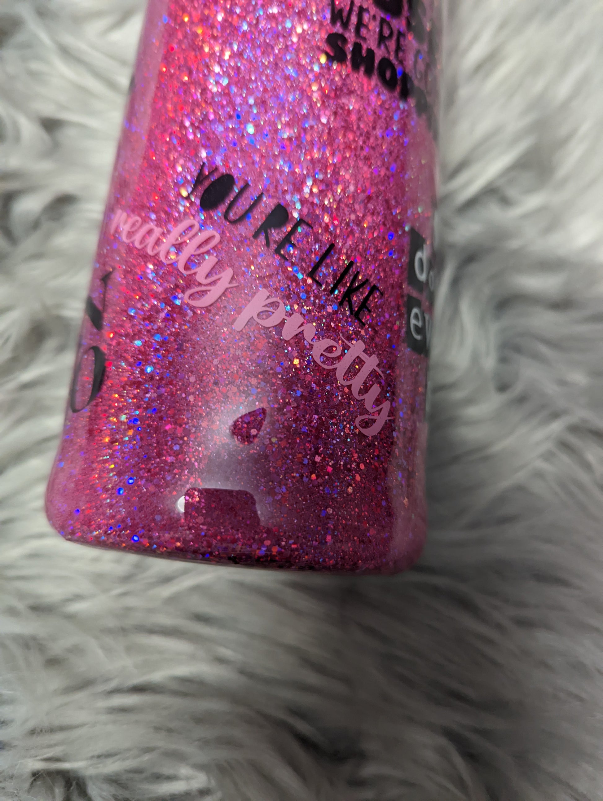 Hot pink glitter base with miscellaneous quotes inspired by the movie "Mean Girls" main decal reads burn book