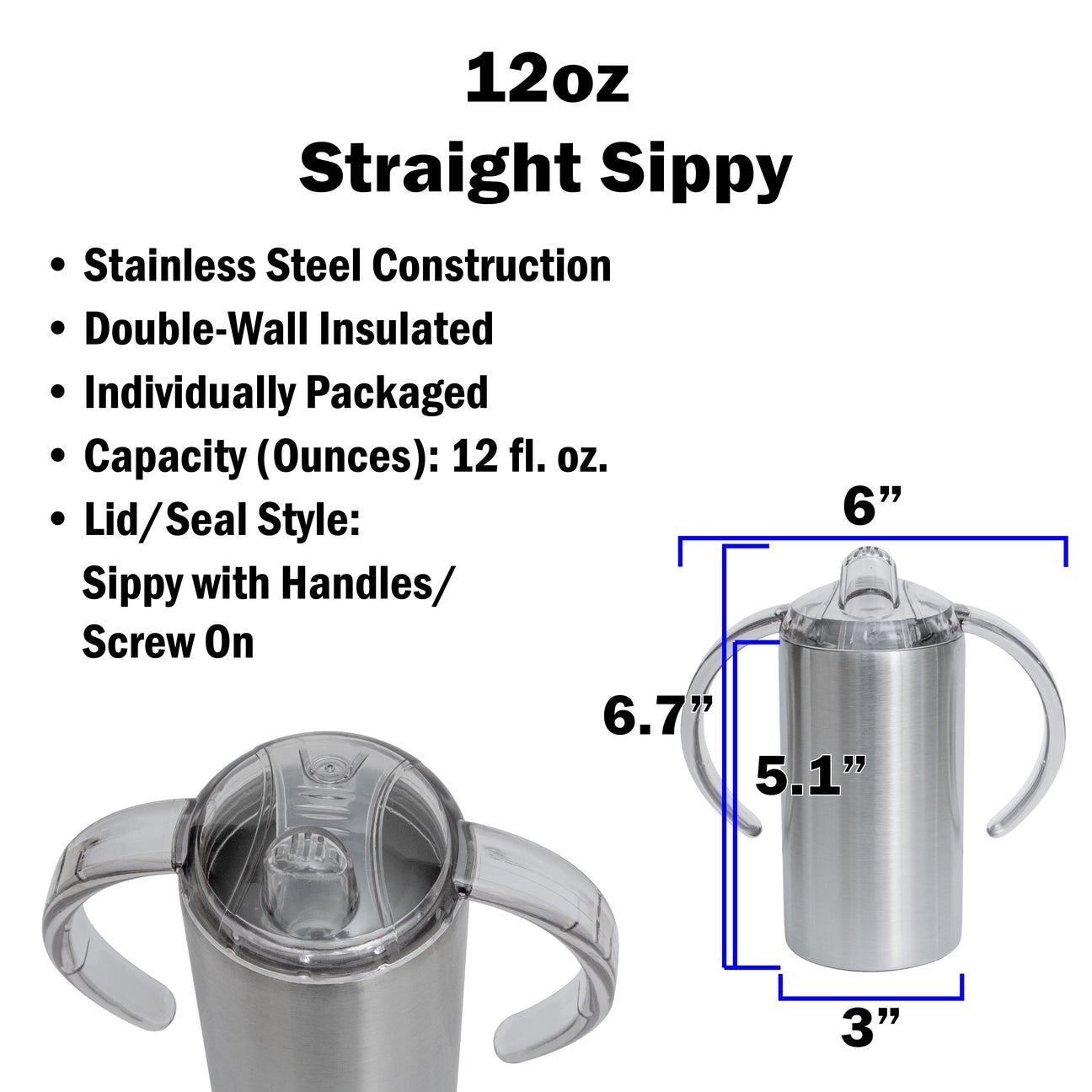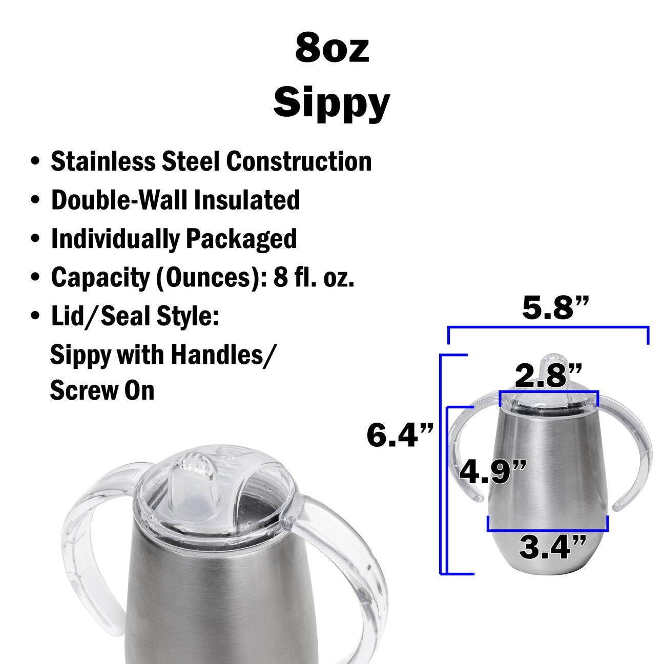 8oz sippy tumbler comes with screw on lid with handles and a removable silicone nipple insert.